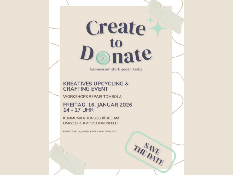 Der Umwelt-Campus Birkenfeld lädt zu einem kreativen Nachmittag für den guten Zweck ein. Dieser startet am 16. Januar 2026 um 14 Uhr im Kommunikationsgebäude. Die Teilnahme ist kostenlos.
