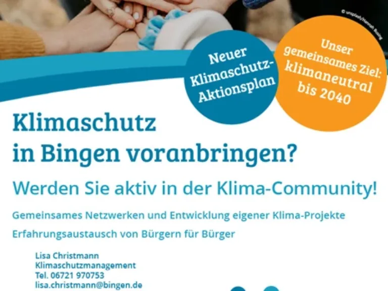 Sie möchten sich aktiv im Rahmen einer Community für Klimaschutz und Energie beteiligen, Ihre Ideen und Ihr Wissen einbringen und Lösungsansätze beispielsweise zu Fragen der Energieeinsparung, Energieeffizienz, Mobilität oder zum Einsatz Erneuerbarer Energien entwickeln? Dann schauen Sie beim nächsten Treffen der Klima-Community Bingen vorbei! Das Community-Netzwerk ist eine Ideenschmiede für neue Klimaschutzprojekte im privaten oder kommunalen Bereich mit weitem Themenspektrum zu Erneuerbaren Energien, Regenerativer Wärmeversorgung und Nachhaltiger Mobilität.